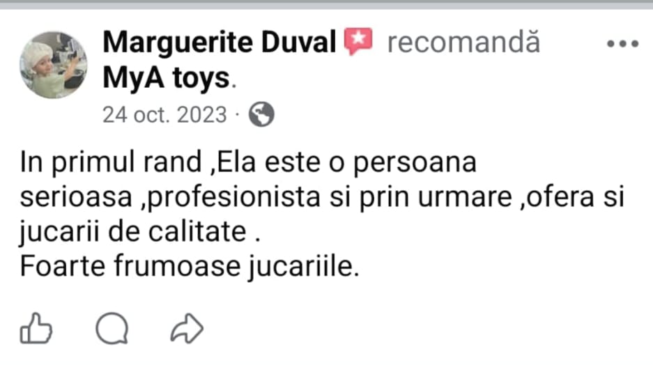 Ne propunem sa venim alături de părinți cu produse variate, adaptate pentru nevoile celui mic si pentru bugetul familiei. Punând la dispoziție atât jucării NOI cât și Second Hand – verificate, curățate și gata de folosință.